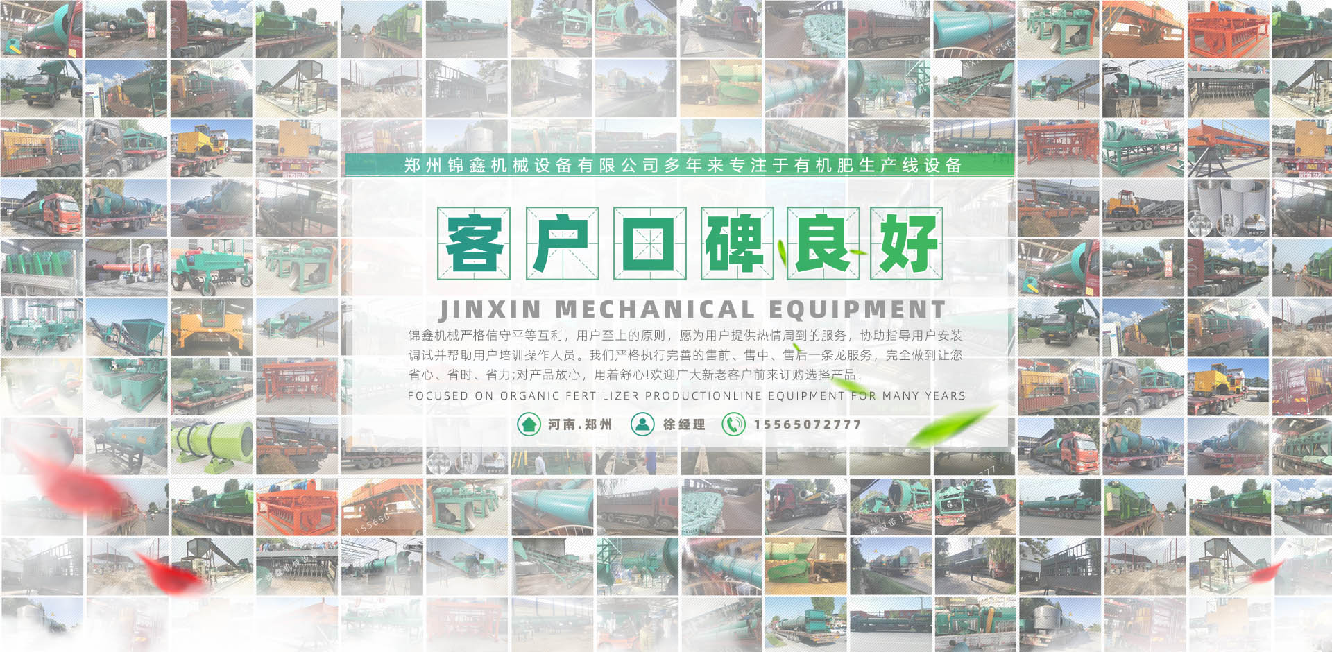 鄭州錦鑫機(jī)械設(shè)備有限公司,位于機(jī)械之鄉(xiāng)的河南省滎陽市,它交通便利,連霍高速公路、鄭州西南繞城高速、隴海鐵路、鄭西客運(yùn)專線貫穿全境,南水北調(diào)、西氣東輸在這里交匯。   公司有技術(shù)團(tuán)隊(duì)為企業(yè)生產(chǎn)肥料加工設(shè)備,有的合作伙伴,科學(xué)、規(guī)范的客戶培訓(xùn)體系;還有積極健康的企業(yè)文化,不斷創(chuàng)新的管理體制和經(jīng)營模式和日益完備的經(jīng)銷網(wǎng)絡(luò)。它交通便利,310國道、連霍高速公路、鄭州西南繞城高速、隴海鐵路、鄭西客運(yùn)專線貫穿全境,南水北調(diào)、西氣東輸在這里交匯。   鄭州錦鑫機(jī)械設(shè)備有限公司是生產(chǎn)有機(jī)肥設(shè)備機(jī)械的企業(yè),產(chǎn)品:有機(jī)肥設(shè)備,有機(jī)肥造粒機(jī),復(fù)合肥設(shè)備,復(fù)合肥造粒機(jī),新型有機(jī)肥攪齒造粒機(jī),對(duì)輥擠壓造粒機(jī),有機(jī)肥生產(chǎn)線,有機(jī)肥加工設(shè)備,復(fù)合肥生產(chǎn)設(shè)備,有機(jī)肥造粒設(shè)備,雞糞烘干機(jī),轉(zhuǎn)鼓造粒機(jī),bb肥設(shè)備等遠(yuǎn)銷各地,品質(zhì)深受肯定! ...